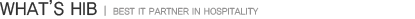 HIB(Hospitality Industry Business호텔정보화)란 호텔, 콘도, 레지던스, 병원등의 객실고객을 대상으로, 정보기술서비스와 다양한 컨텐츠 제공을 통한 고객만족도 향상을 목표로 하며, 더불어 사업자측에게는 효과적인 고객관리와 더불어 수익향상을 제공하는 사업을 말합니다.